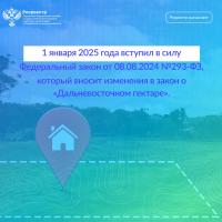 1 января 2025 года вступил в силу Федеральный закон от 08.08.2024 №293-ФЗ, который вносит изменения в закон о «Дальневосточном гектаре».
