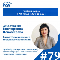 11 августа 2025 г. с 11.00 ч. до 12.00 ч. в Общественной приёмной политической партии "Единая Россия" личный прием граждан проведет глава администрации Известковского городского поселения - Анастасия Некозырева