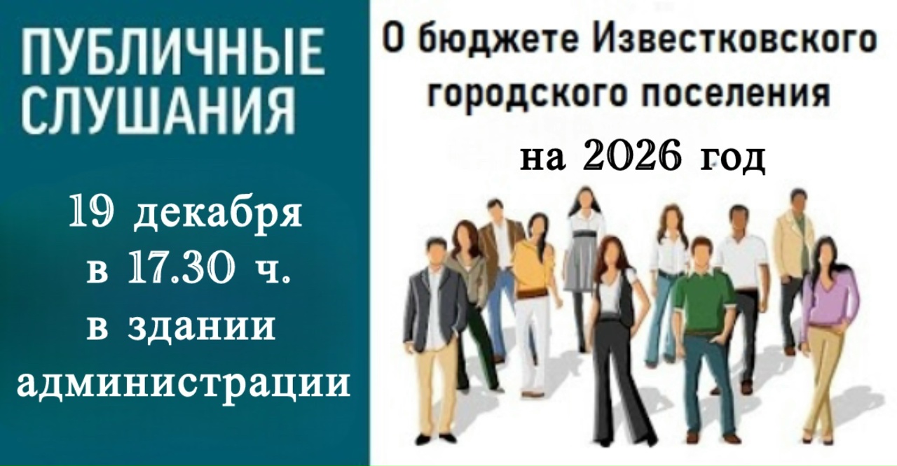 Администрация Известковского городского поселения извещает о проведении публичных слушаний по рассмотрению проекта решения «О бюджете муниципального образования «Известковское городское поселение» на 2026 год и плановый период 2027 и 2028 годов».