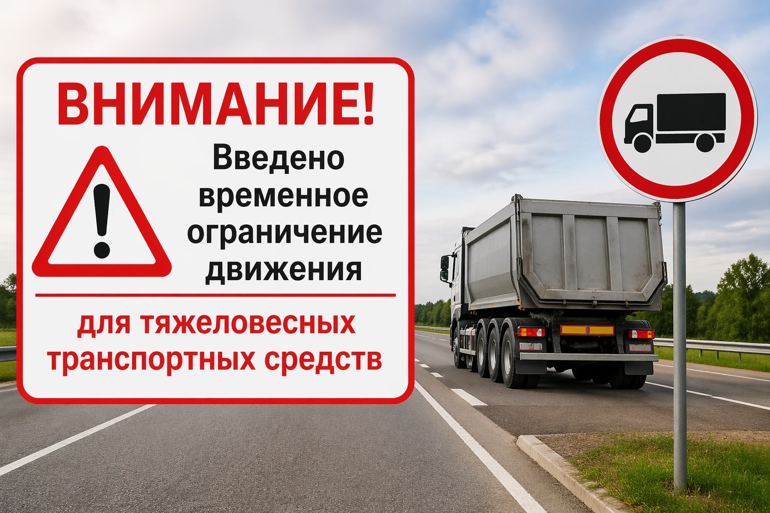 ВНИМАНИЕ! Ограничение движения для тяжеловесного автотранспорта