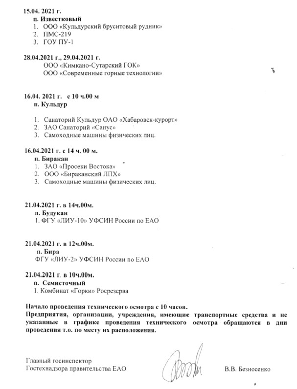 График прохождения техосмотра
