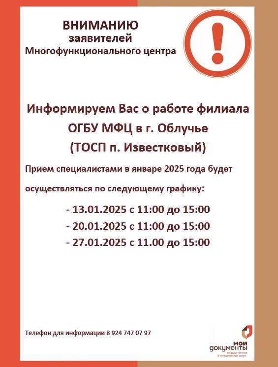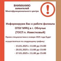 График приема специалистами МФЦ в январе 2025 года