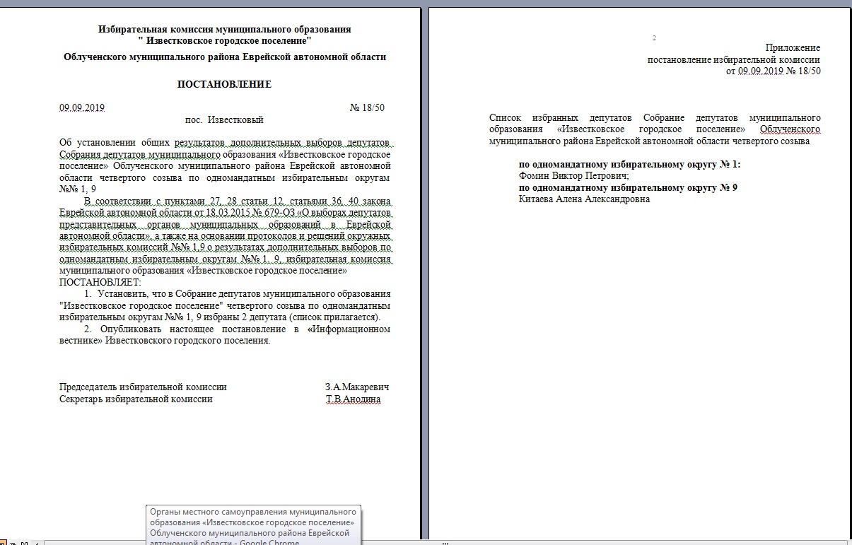 На основании протоколов участковых избирательных комиссий об итогах голосования на выборах депутатов Собрания депутатов муниципального образования "Известковское городское поселение" Облученского муниципального района Еврейской автономной области четвертого созыва избирательная комиссия муниципального образования "Известковское городское поселение"